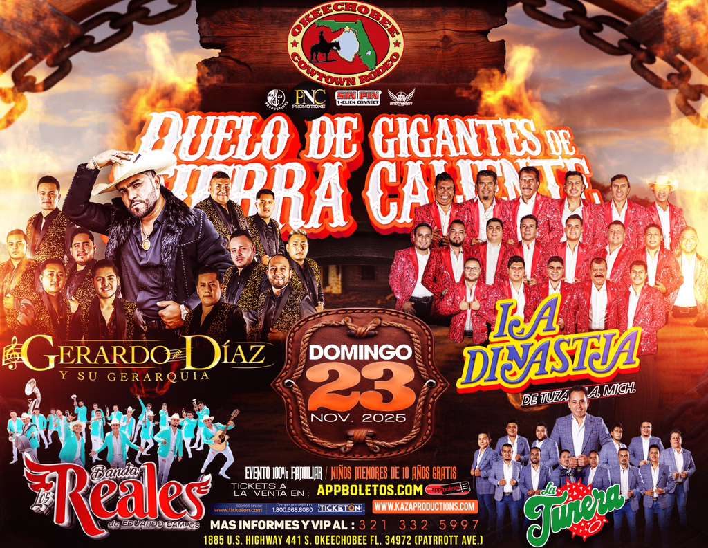 Gerardo Diaz y su Gerarquia-La Dinastia De Tuzantla-Banda Reales-Banda La Tunera-Duelo de Gigantes de Tierra Caliente-Okeechobee Cowtown Rodeo