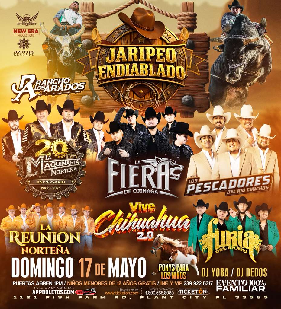 Tus entradas para La Maquinaria Nortena-La Fiera de Ojinaga-Los Pescadores del Rio Conchos-La Reunion Nortena-La Furia del Bravo-Vive Chihuahua 2.0-Rancho Los Arados